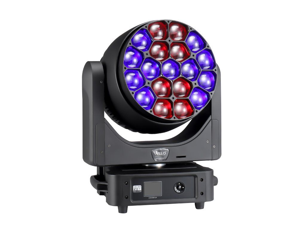 LED Bee Eyes K20 je vysoce výkonná otočná hlava typu wash/beam osazená 19× 40W RGBW LED čipy značky Osram. Nabízí mimořádně široký motorizovaný zoom v rozsahu 4°–60°, plynulé míchání barev a unikátní rotující čočku, která vytváří bohaté grafické efekty. Díky individuálnímu ovládání každé LED diody a funkci CTO (2700K–8000K) je ideální volbou pro profesionální stage, televizní studia a náročné světelné instalace vyžadující maximální kreativitu a světelný výkon.