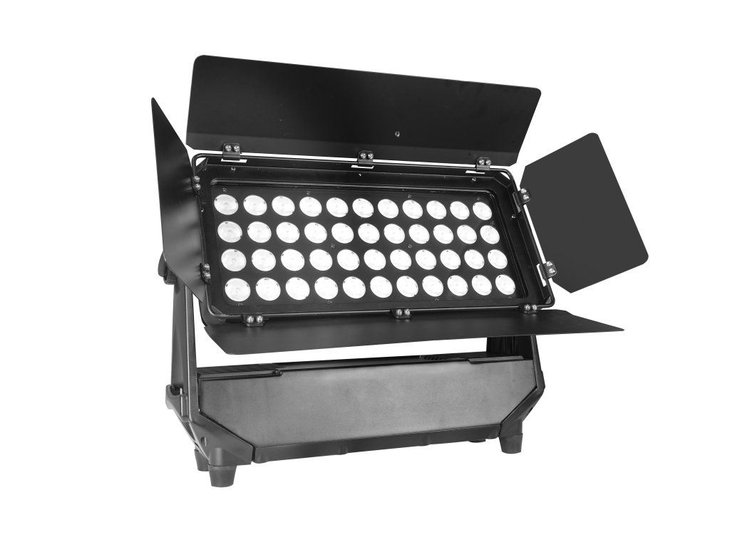 LED TOP P4 je profesionální venkovní wash panel s krytím IP65, který je osazen 40 kusy 15W RGBW LED čipů značky Cree. Tento výkonný reflektor o celkovém příkonu 700 W nabízí výjimečnou svítivost, plynulé míchání barev a precizní optiku s úhlem 20° (volitelně 40°). Díky robustnímu hliníkovému tělu a odolnosti proti povětrnostním vlivům je ideální pro plošné nasvícení budov, velkých pódií a venkovních eventů.