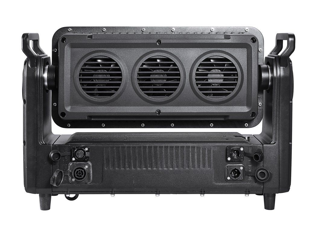 Konstrukce z tlakově litého hliníku zaručuje dlouhou životnost a odolnost. Připojení je řešeno profesionálními konektory Seetronic IP65 (DMX i napájení). Veškeré nastavení se provádí pohodlně přes LCD displej.